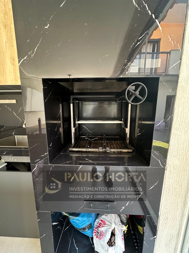 🌳 No exterior pode usufruir de uma zona de lazer com relvado sintético, com aproximadamente 75 m2, e uma cozinha com churrasqueira moderna resultante da conversão de uma garagem, com 15.40 m2, ideal para confraternização familiar e amigos.