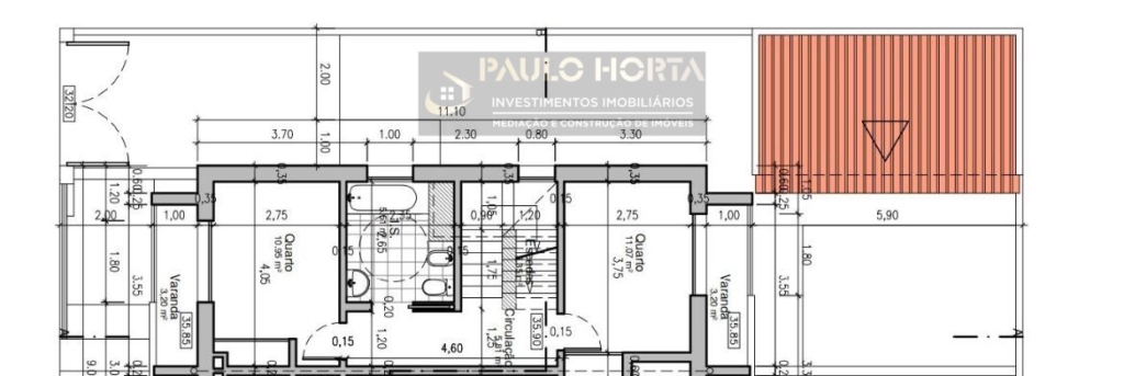 🛏️ Quarto 2 com roupeiro e varanda e áreas de 11.07 m2 e 3.20 m2 respectivamente;